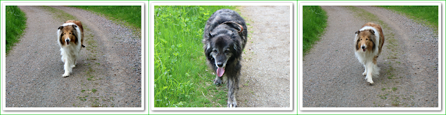 Vi slapp den tillfälliga regnskuren och vädret lättades upp... Framför oss möttes istället en "Morgan" med en vinkandes passagerare som satt i våra mått mätt på "förarsidan" egentligen. Sol med sköna svaga vindar... +22. Jag fick sällskap idag under promenadens gång. |
